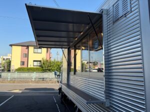 アルミコルゲートバンの荷ハコに跳ね上げトビラ+